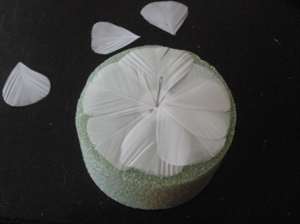 - Сверху подравнять края, придав перьям форму лепестков.