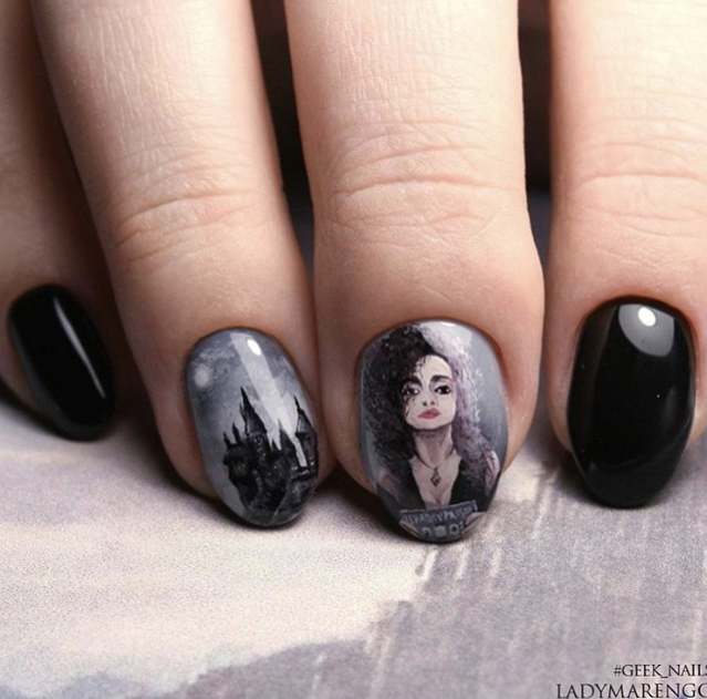 И конечно же, маникюр будет интереснее сделать в соответствии с общей тематикой такой вечеринки. Посмотрите, как интересно и необычно может быть оформлен такой маникюр.