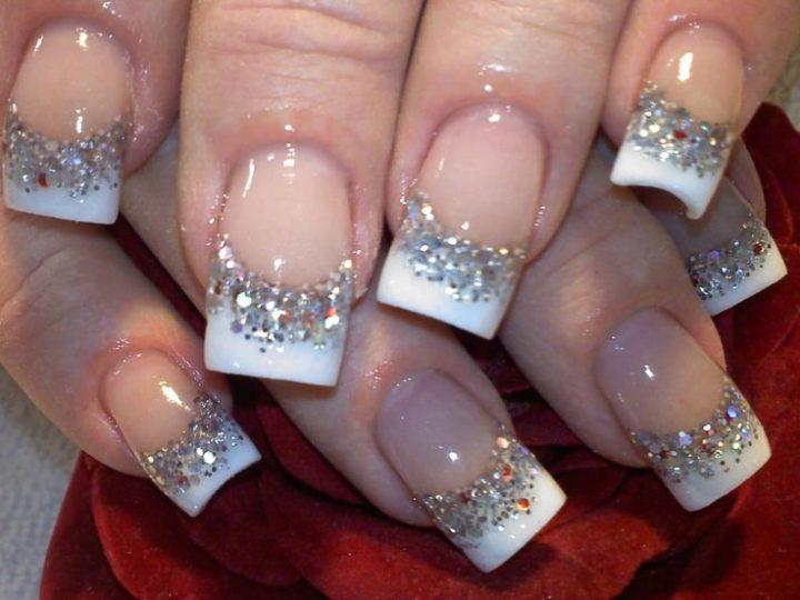 Например, очень нежно, но в то же время роскошно смотрится классическийманикюр с рисунком. Для его создания потребуется: база, белый и серебристый лак, закрепитель и удобная длинная кисточка. Выполняется он следующим образом: сначала на подготовленный ноготь наносится френч, затем, когда все слои лака основательно подсохли, можно наносить рисунок.