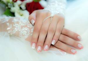 Если в период свадьбы планируется множество поездок, активных мероприятий и т. д., рекомендуется воздержаться от обилия камушков на ногтях и объемных деталей: такой маникюр хрупок и не очень практичен, декор может скалываться или отлепляться, еще недавно такие красивые ногти быстро придут в негодность.