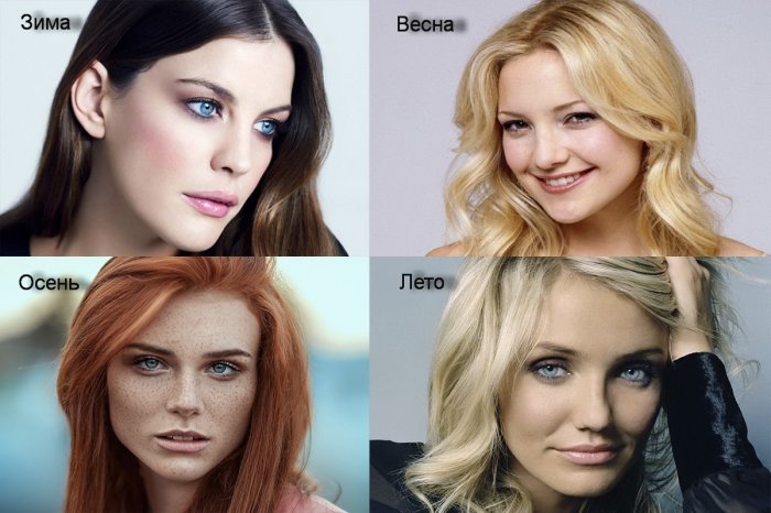 - Весна: светлая кожа, русые волосы с золотистым или пшеничным отливом, глаза от светло-серых до светло-карих.
