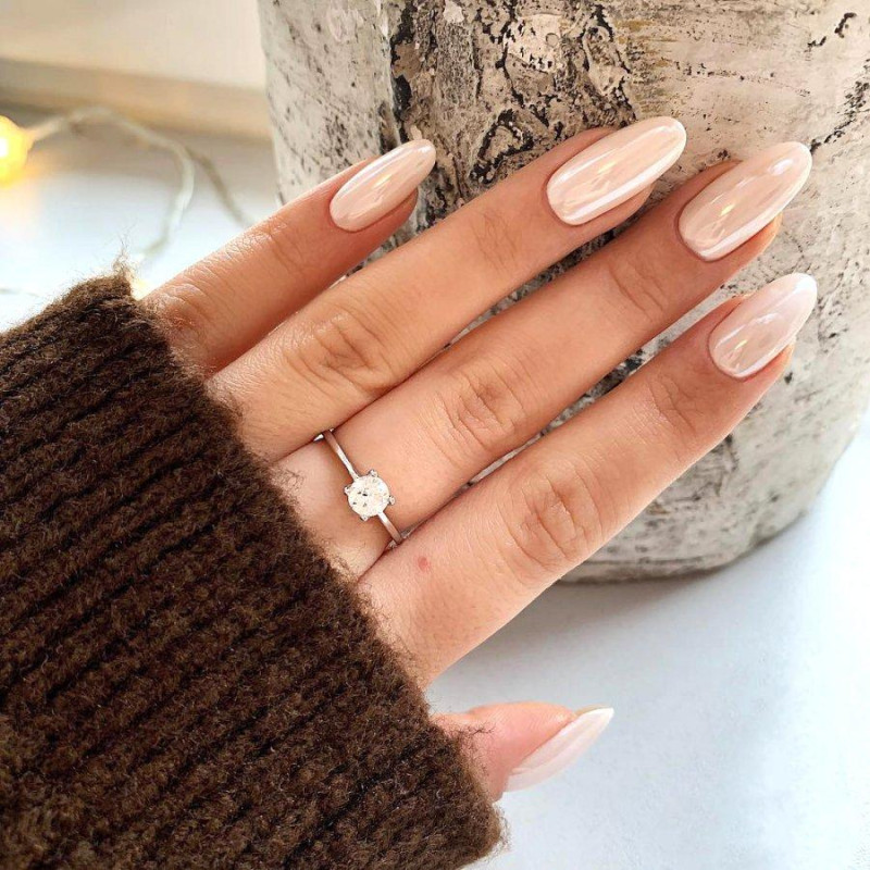 Эти свадебные ногти находятся вне времени. Из многих видов свадебного маникюра – этот базовый стиль никогда не подведет. Используйте розовый и кремовый оттенки. Также вы можете использовать традиционную полироль с глянцевым верхним слоем или гель лак для идеального глянцевого покрытия.