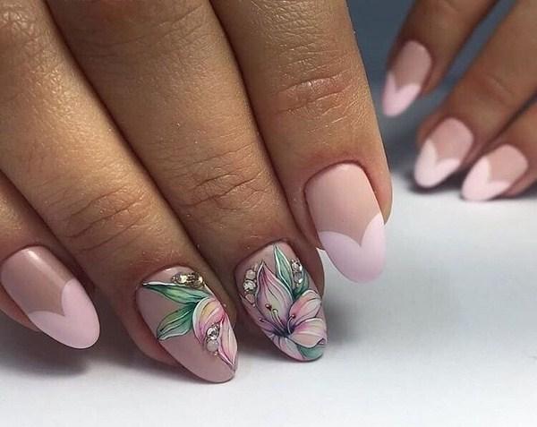 В тренде цветочный маникюр. Образ невесты всегда ассоциируется с цветком или распускающимся бутоном. Поэтому художники нейл-арта используют изображение цветов на розовом фоне с завидной регулярностью. Но акцент всегда на безымянном пальце, чтобы цветочное многообразие не перегружало нежный и воздушный образ невесты.