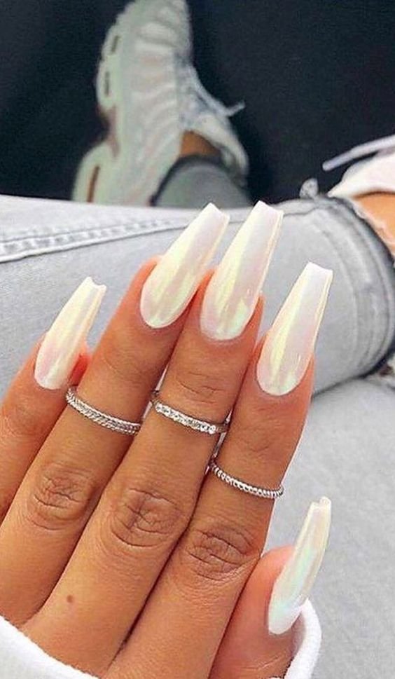 Эти свадебные ногти находятся вне времени. Из многих видов свадебного маникюра – этот базовый стиль никогда не подведет. Используйте розовый и кремовый оттенки. Также вы можете использовать традиционную полироль с глянцевым верхним слоем или гель лак для идеального глянцевого покрытия.