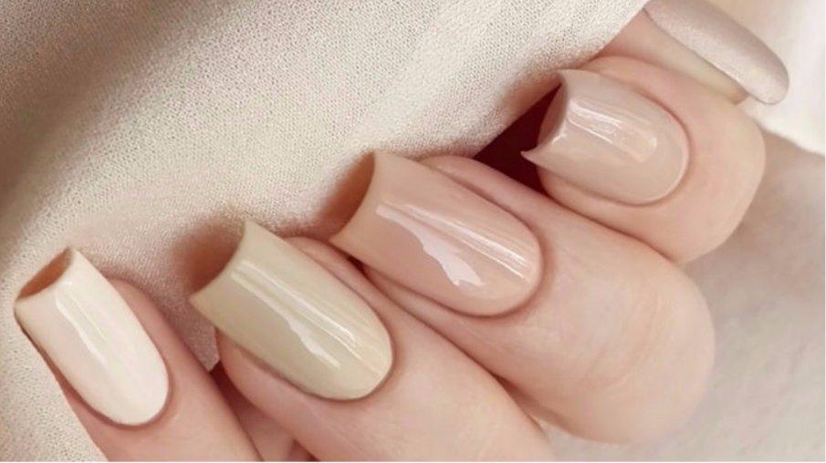 - Нанесите бежевый лак на все ногти. Высушите их в лампе.