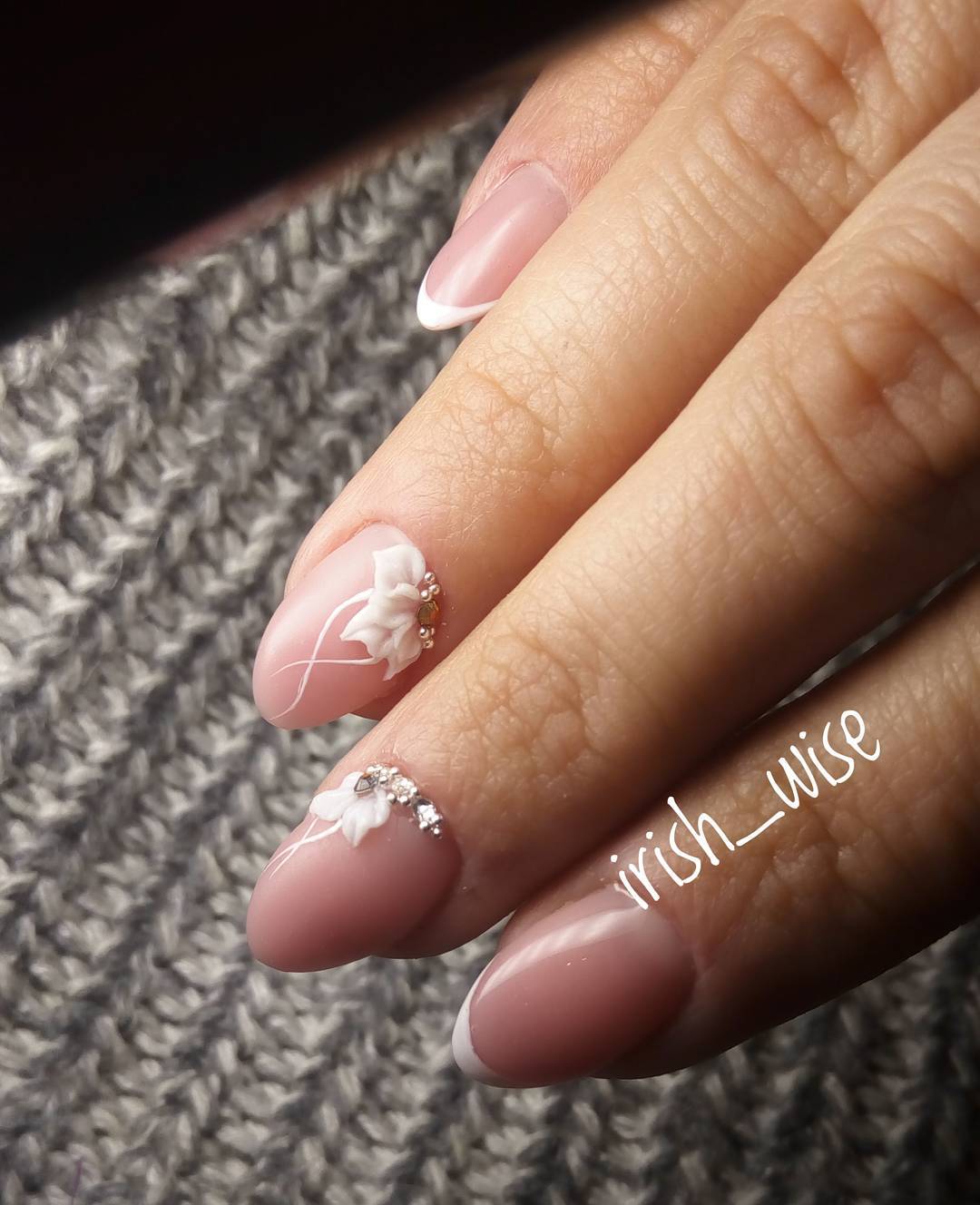 На ногтях невесты будто появляются живые цветы или объемные бантики, в основном белого и нежно-розового цвета.