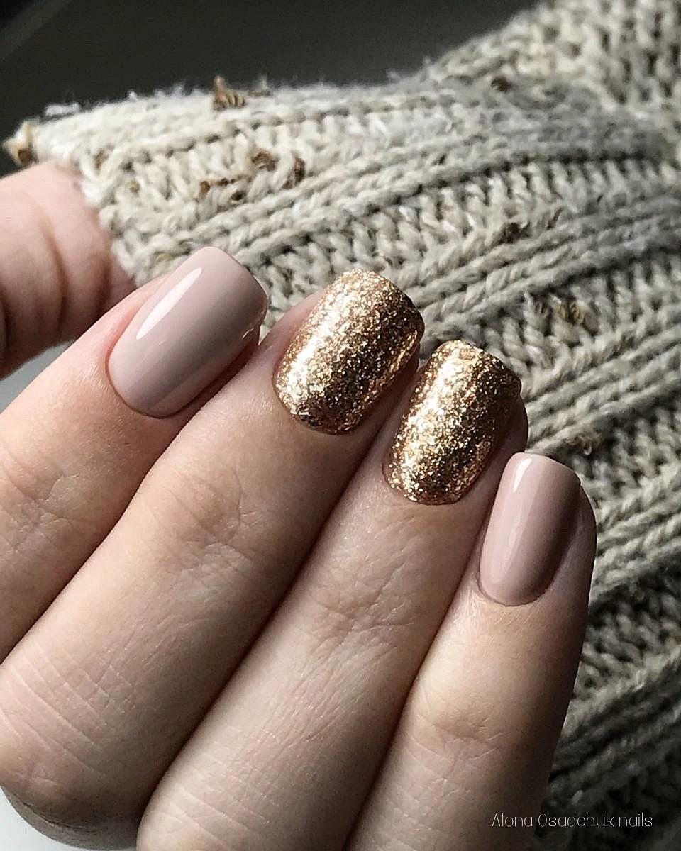 Эти тонкие прозрачные ногти напоминают нам о бокале с шампанским. Они идеально подходят для торжества. Нарисуйте два слоя розового оттенка, а дальше добавьте омбре и блестки. Для такой точности используйте специальную губку, чтобы нанести ее на ногти. Не забудьте о глянцевом верхнем слое.