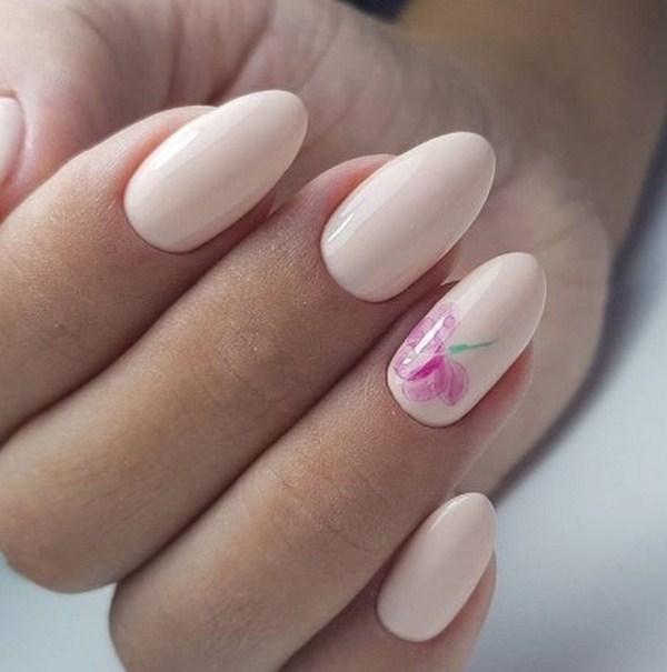 Летний маникюр – нюдовые оттенки лаков с присутствием, геометрии или рисунков бабочек, цветов, фруктов и прочего.