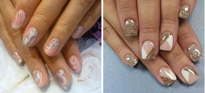 Маникюр на свадьбу технике «Мрамор» с геометрией и не только.