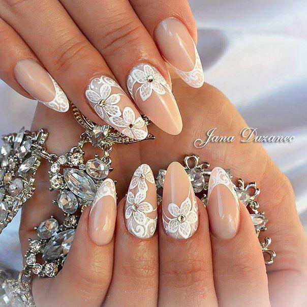 Для свадебного маникюра коротких ногтей используют разнообразные рисунки:
