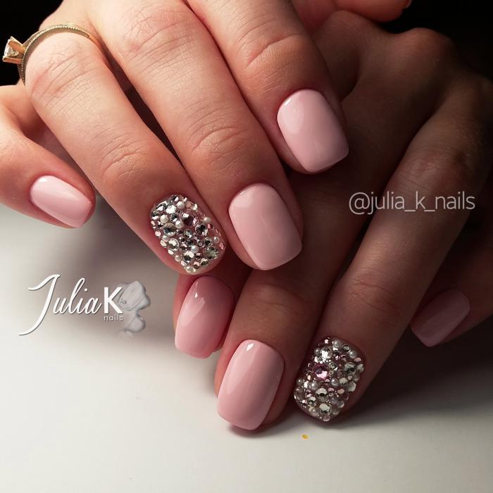 Также очень красиво смотрится, когда стразы располагаются не на всех пальцах, а только лишь на безымянных.