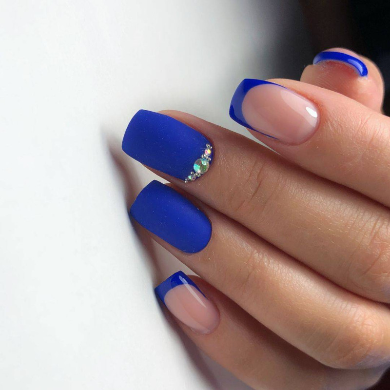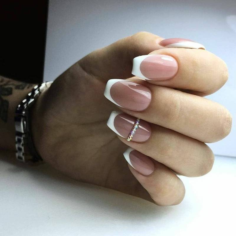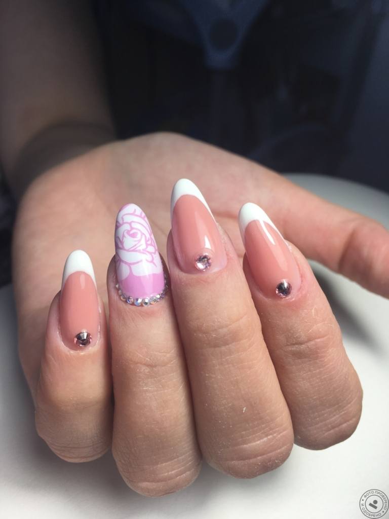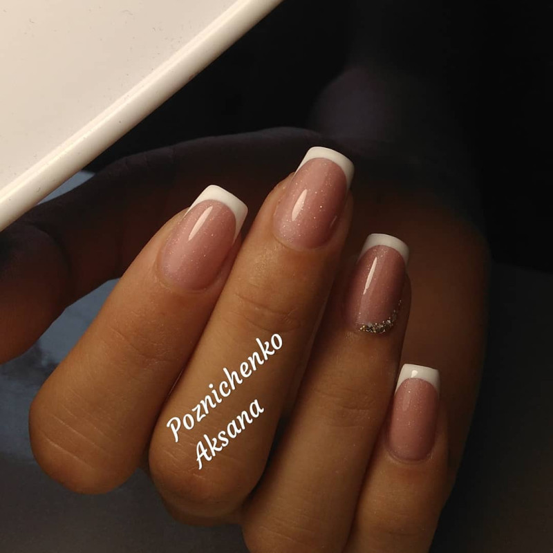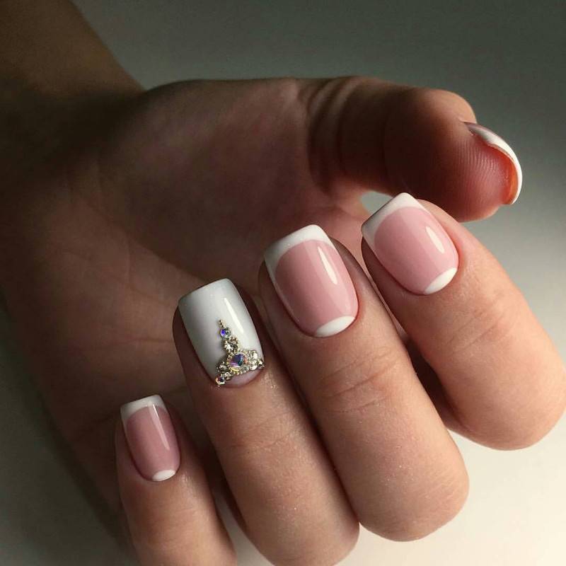 Самым распространённым является французский маникюр со стразами.