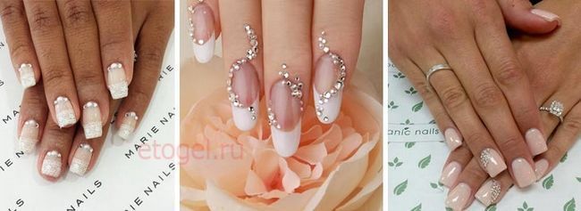 Маникюр для невесты со стразами и блестками