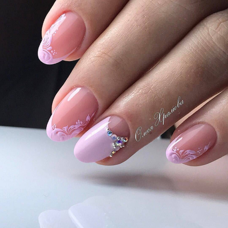Выбор лака – на вкус невесты. Единственное, что нужно знать – покрытие должно сочетаться с платьем и букетом. Чаще всего невесты выбирают нежно-розовый и сиреневый лак. Это самые популярные цвета свадебного сезона 2019.