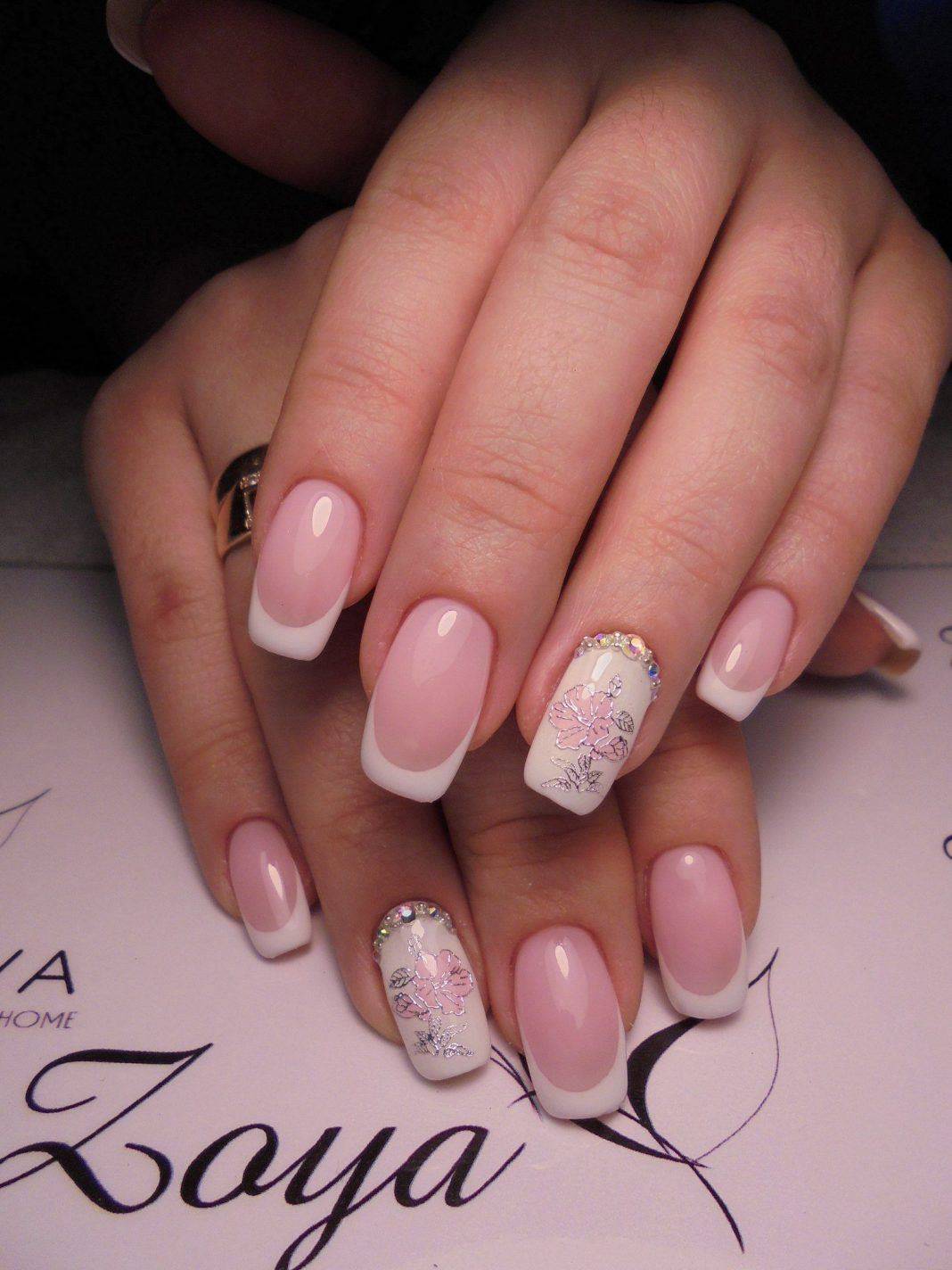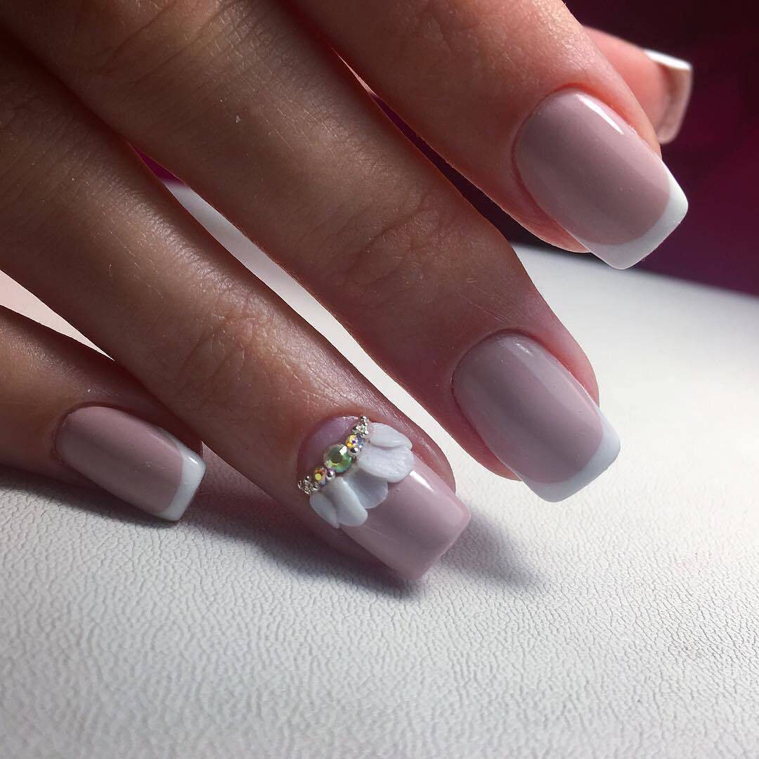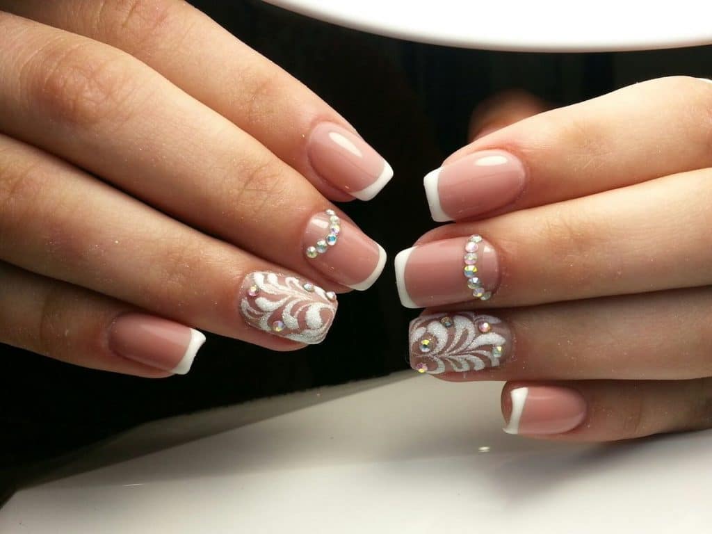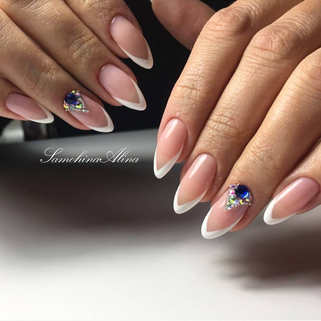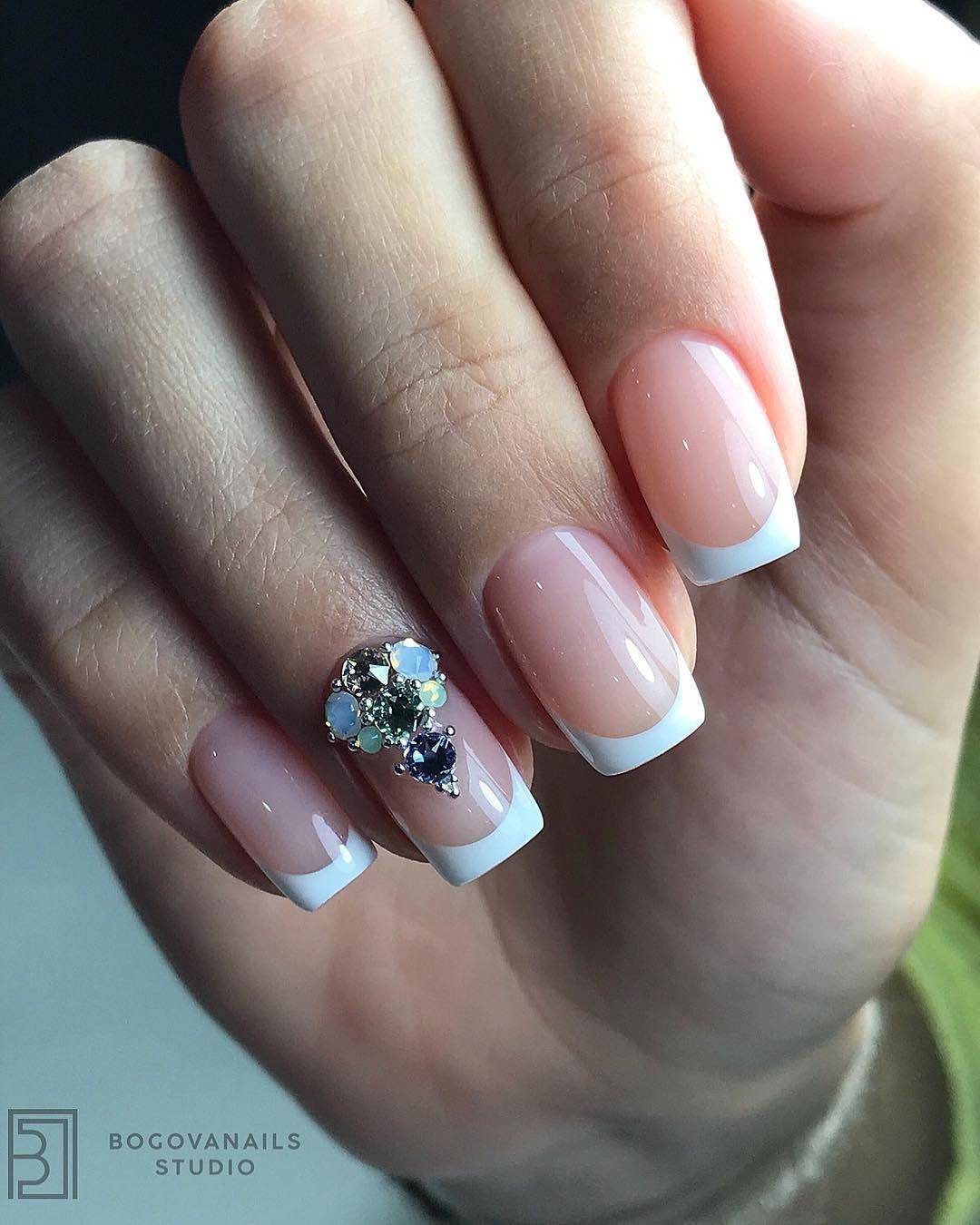 Самым распространённым является французский маникюр со стразами.