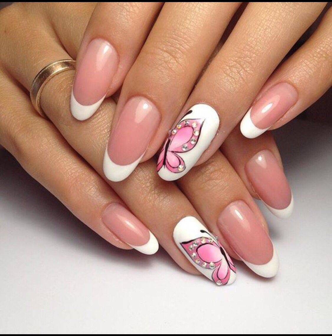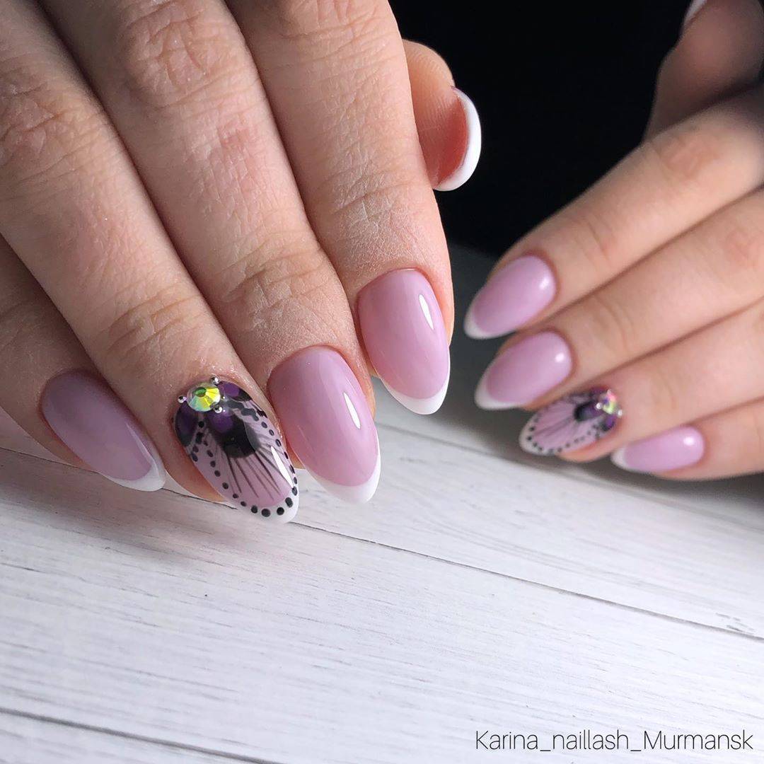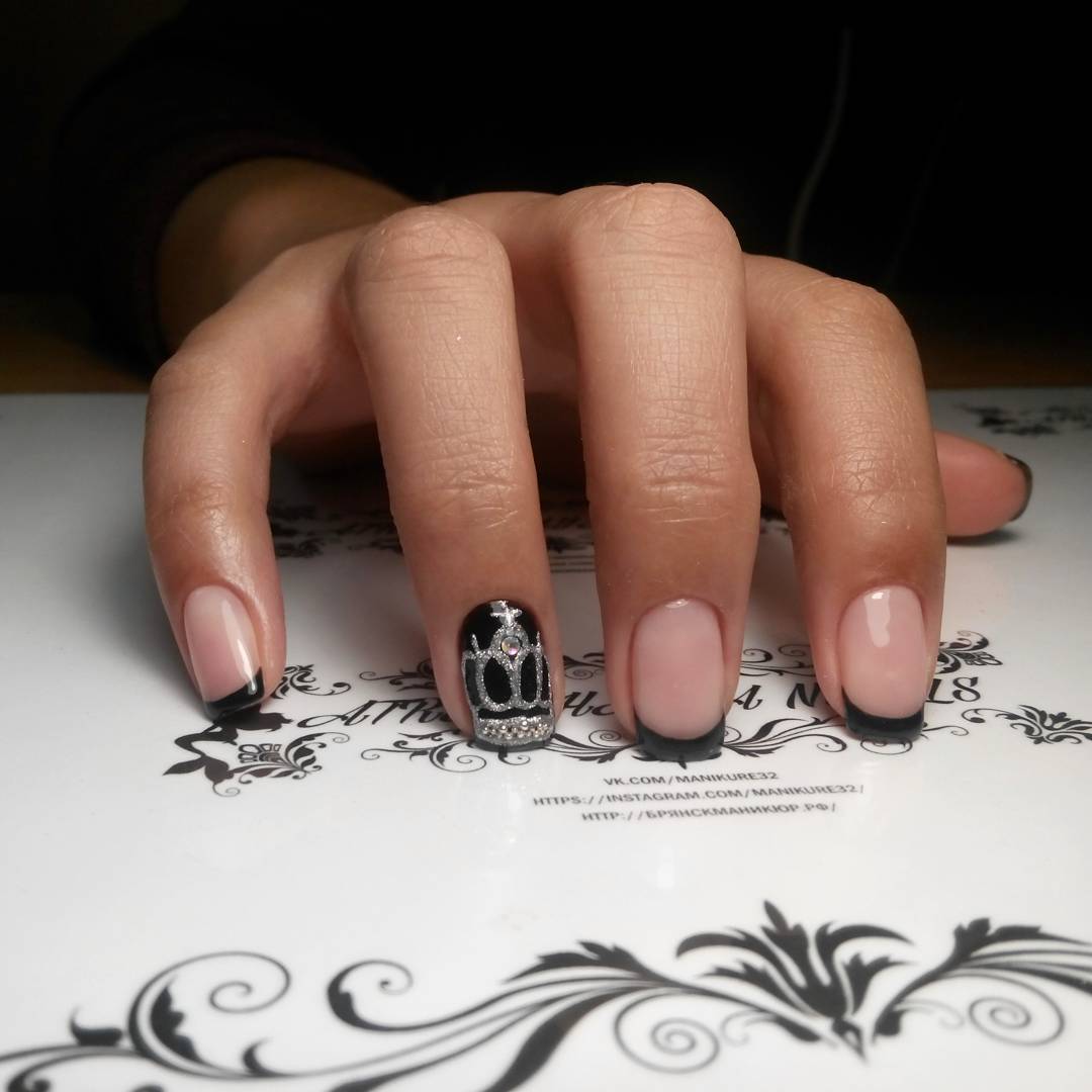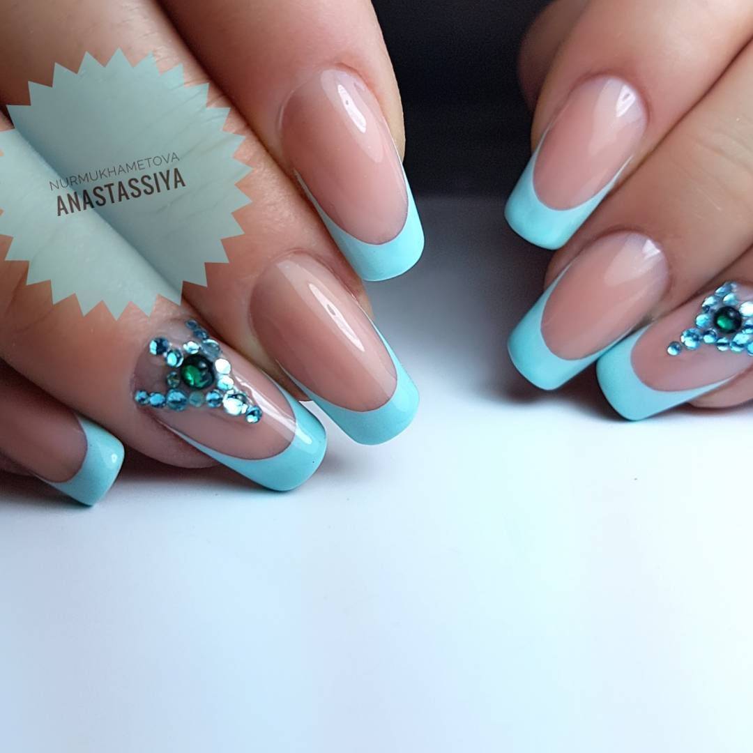 Самым распространённым является французский маникюр со стразами.
