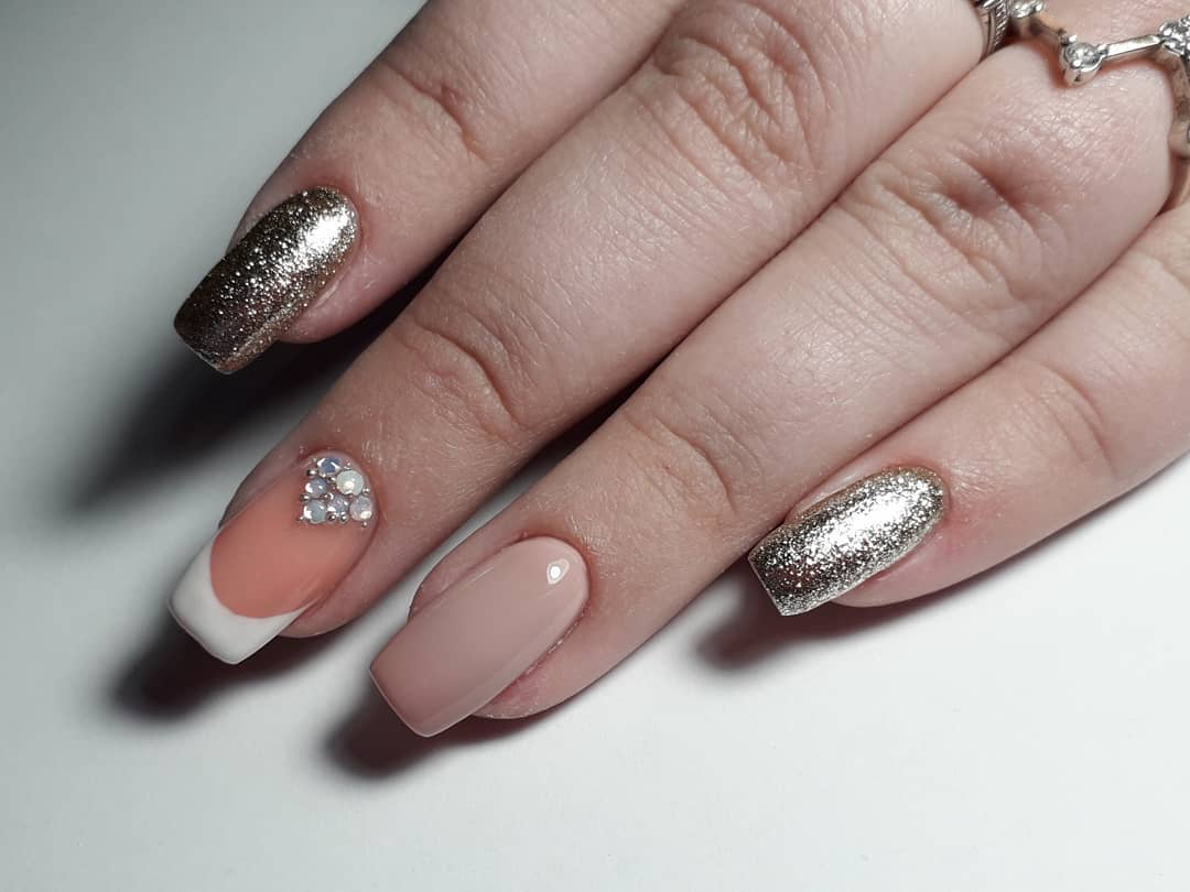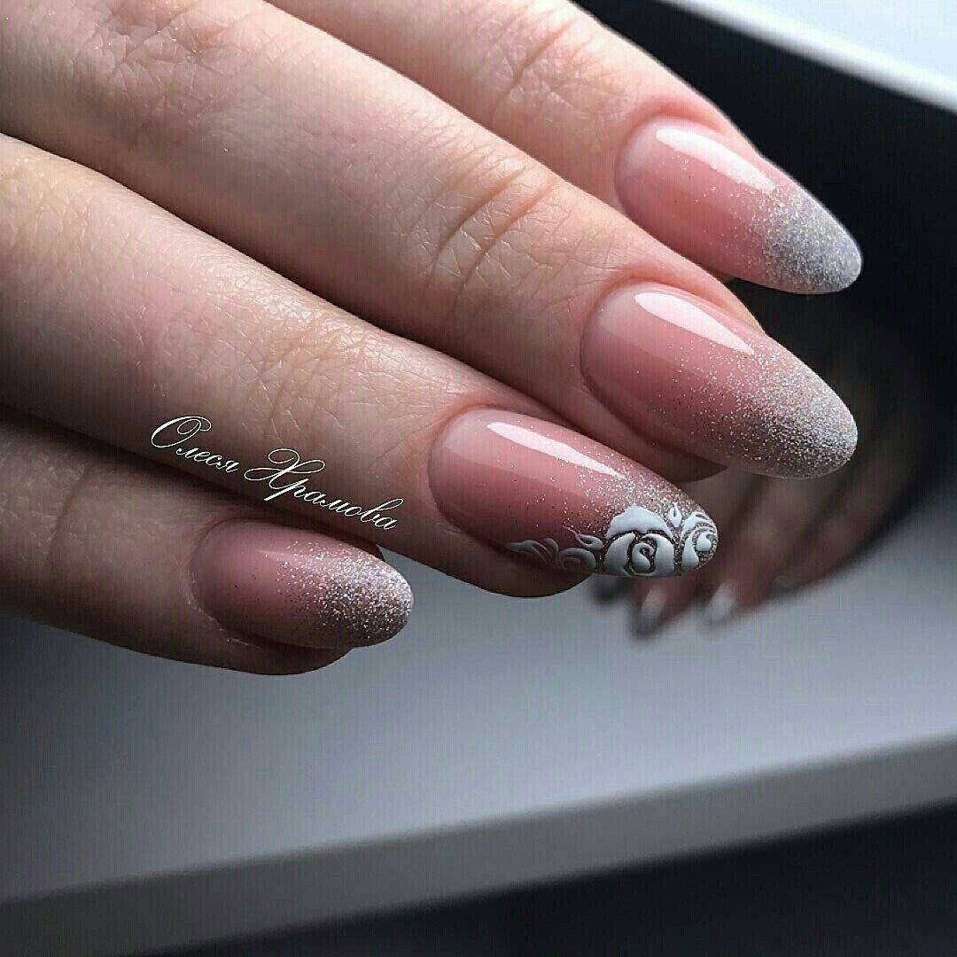 Маникюр для невесты со стразами и блестками