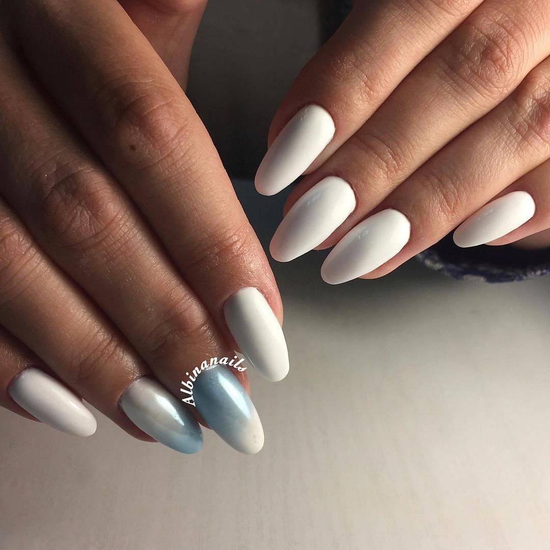Техники маникюра в белых тонах на острые, закругленный, квадратные ногти.