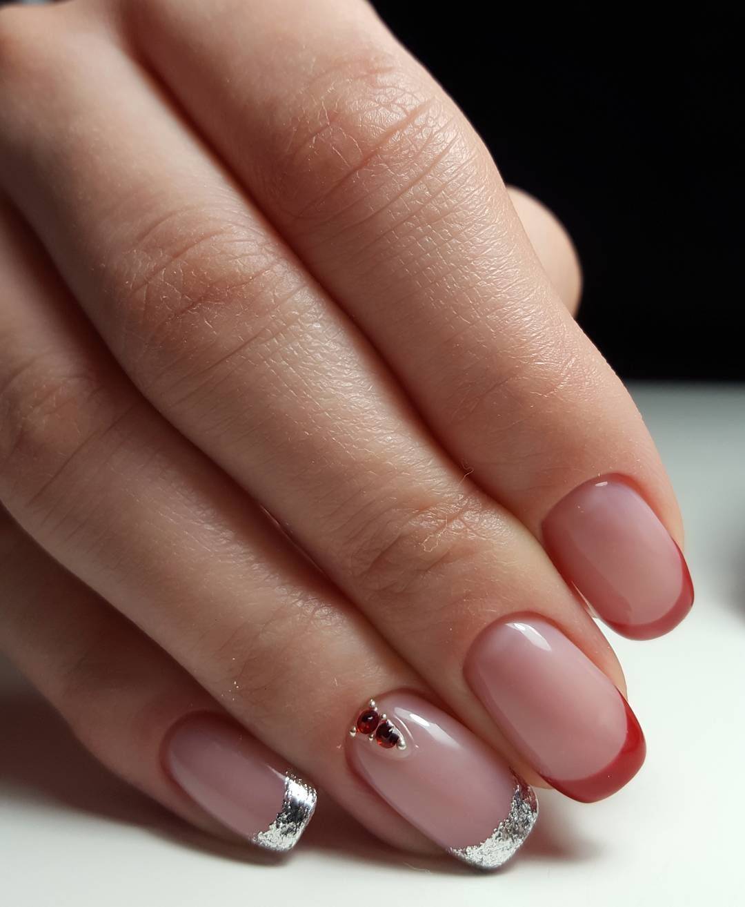 Такой аккуратный и женственный маникюр подойдёт под любой праздничный наряд.