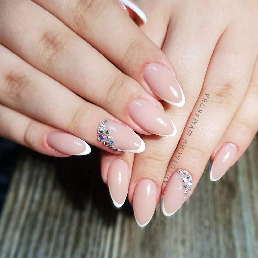 Уже давно стразы перекочевали с элементов одежды к нам на ногти. Красивый маникюр со стразами хорошо смотрится на ногтях разной формы и подходит для всех случаев жизни.