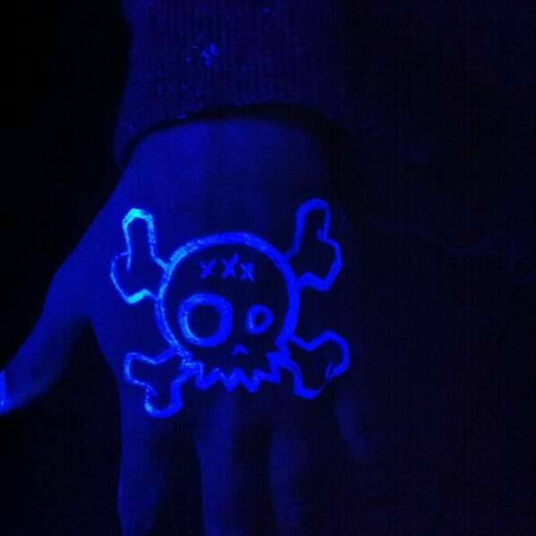 Способ обратить на себя внимание это сделать нательный рисунок, который реагирует на ультрафиолет. В то время в краску добавляли фосфор, который вызывал разные кожные и другие заболевания