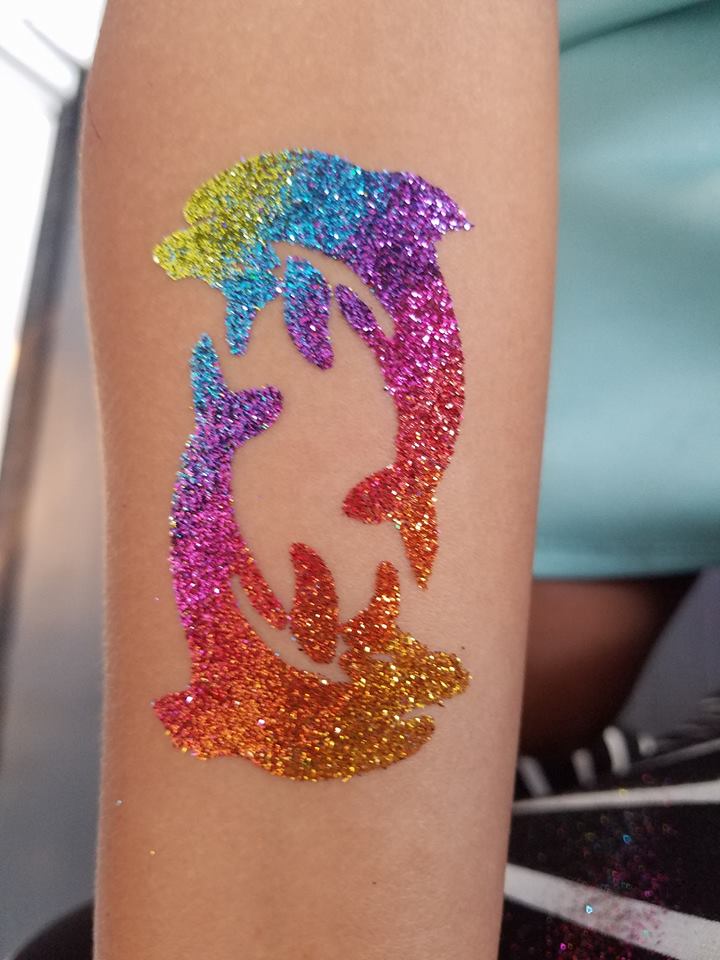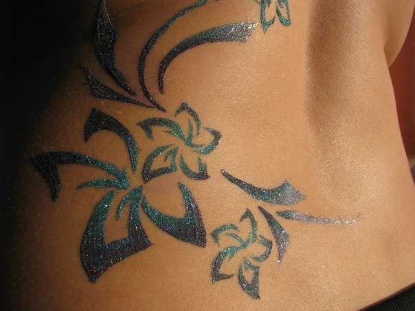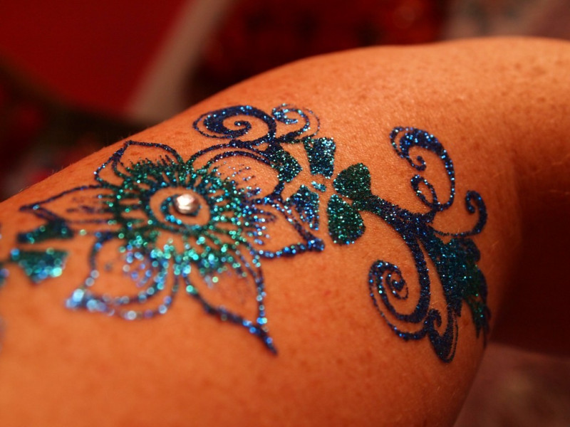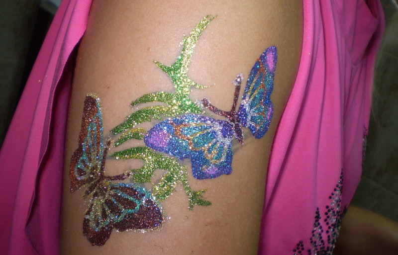 Татуировки временного типа, которые наносятся на тело девушек и детей с помощью блесток хорошо выглядит как в дневное время, так и ночью, при этом не важно, искусственное или естественное освещение, благодаря чему можно покрасоваться татуировкой, как на пляже, так и в ночном клубе. При этом совершенно не важно, где располагается изображение, на руке, ноге или животе, ведь глиттер тату – это универсальное решение, которое отличается безопасностью и простотой реализации, благодаря чему ограничения отсутствуют