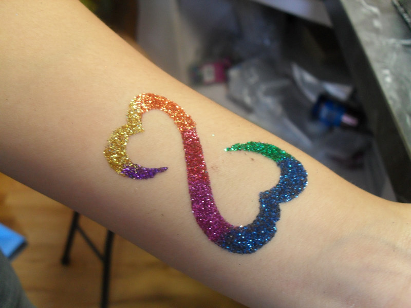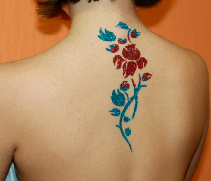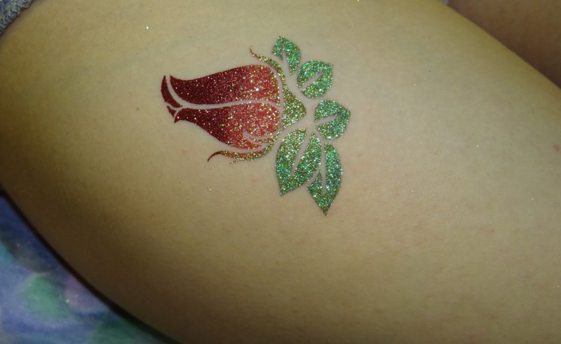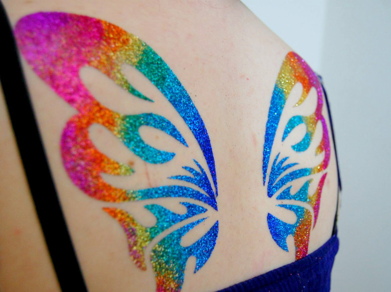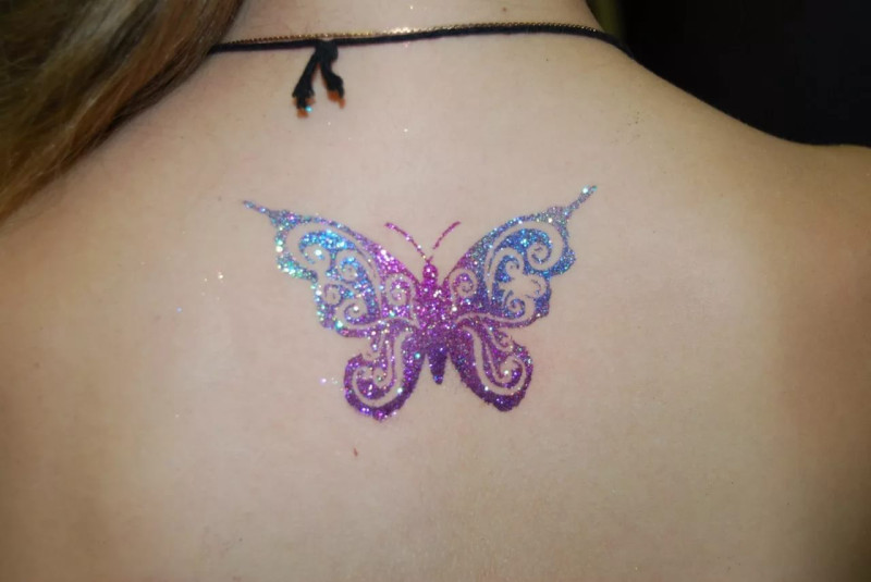 Не менее важно то, что для нанесения татуировки на поверхность тела используют специальный клей, который безопасен для жизни и здоровья человека, не вызывает покраснений или раздражения. Глиттер тату разрешают даже детям и людям, имеющим чувствительную кожу