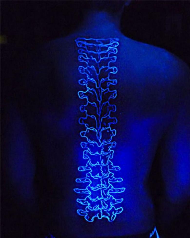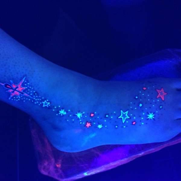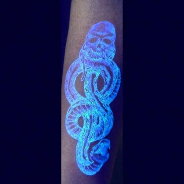 «На самом деле это не фосфорсодержащие настоящие светящиеся в темноте пигменты, что было бы небезопасно», – говорит она. Она добавляет, что светящиеся в темноте татуировки постоянны, как и обычные татуировки, а некоторые цвета могут изменяются и слегка тускнеют со временем, по сути, пигмент остается очень похожим на обычный пигмент татуировки.