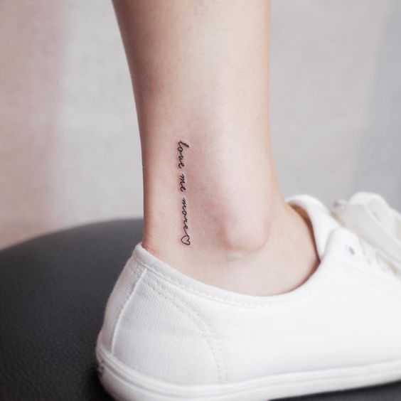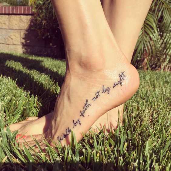Очень привлекательно смотрится тату надпись на лодыжке, ступне и щиколотке. Чаще всего девушки выбирают эту зону для небольших фраз или же дополняют их маленьких рисунком. Это действительно отличный способ украсить изящную женскую ножку. Но все же стоит отметить, что для многих процедура может быть очень болезненной. Это связано с тем, что кожа в этой зоне довольно тонкая и близко расположена к кости.
