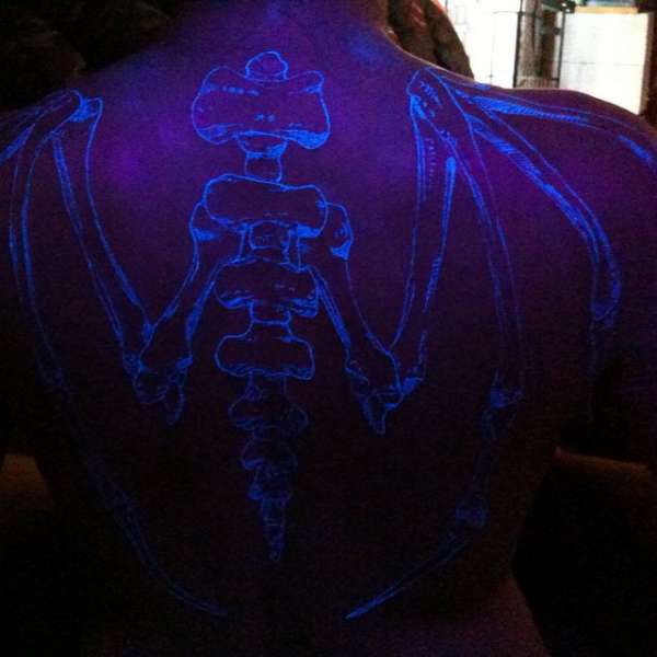 Тату-мастер наносит на кожу белые чернила, которые содержат УФ-реактивные пигменты, благодаря им татуировка светится. Днем изображение выглядит как обычный нательный рисунок, а ночью или в темноте светиться.