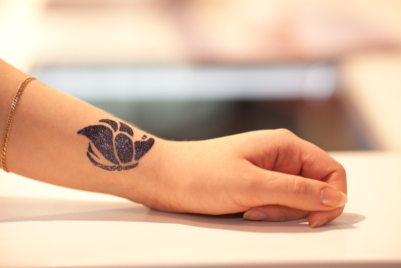 С татуировкой блестками нет страха, что она смоется, ведь клей водостойкий и эластичный, благодаря чему душ или пляж не создают проблем.