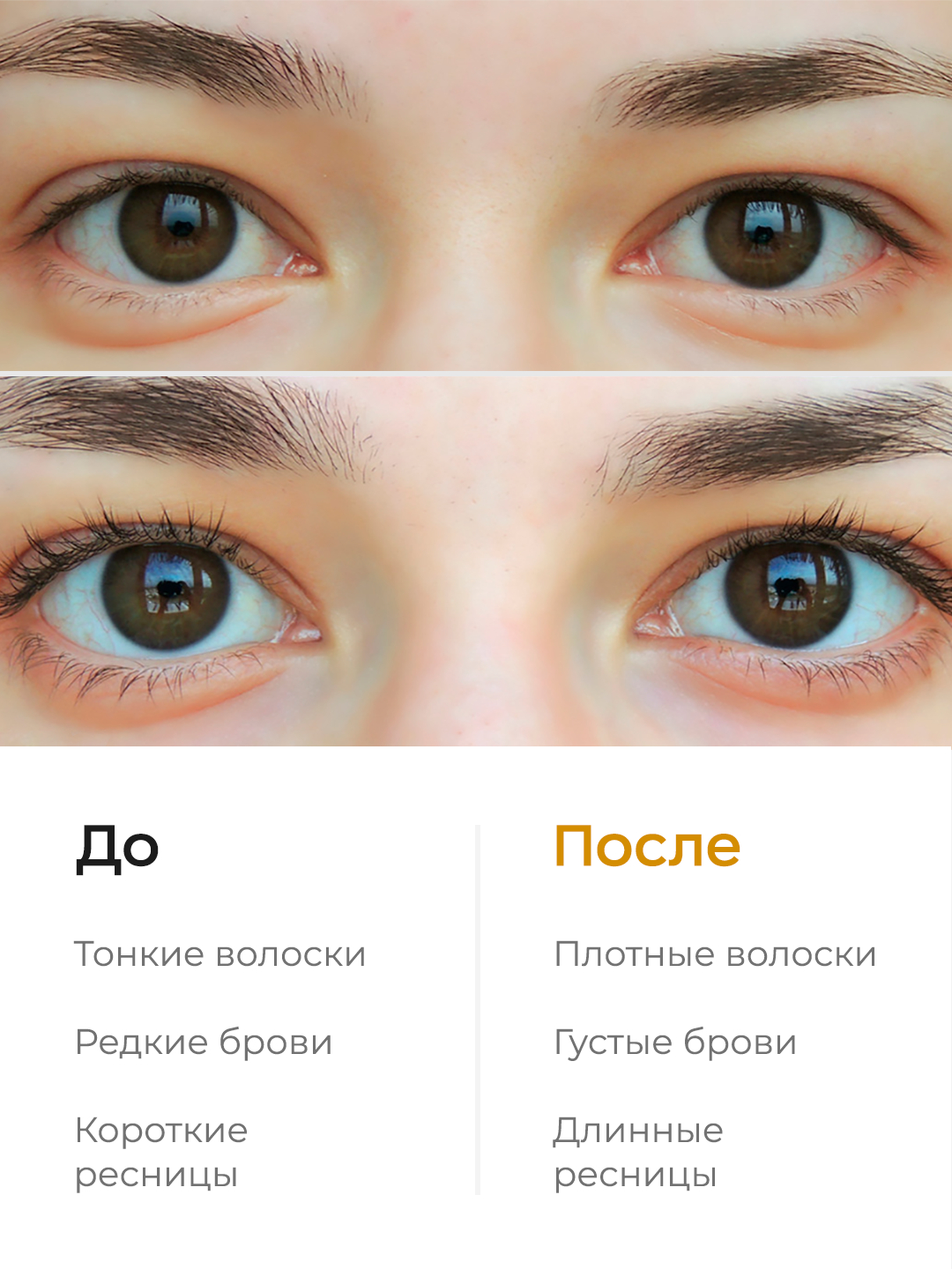 - Увеличение густоты волосяного слоя. Растительность чувствительной поверхности глаза после использования средства становится подвержена изменению формы и расположения, а реснички становятся пушистыми и пышными. Их становится легче регулировать после использования декоративной косметики.