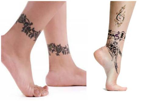 Как и обычные объемные украшения, тату браслет на ноге призван подчеркнуть тонкие щиколотки своей обладательницы