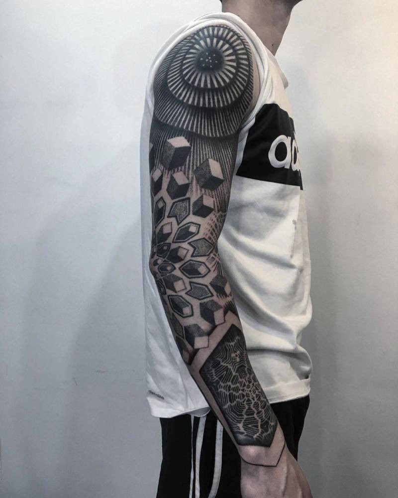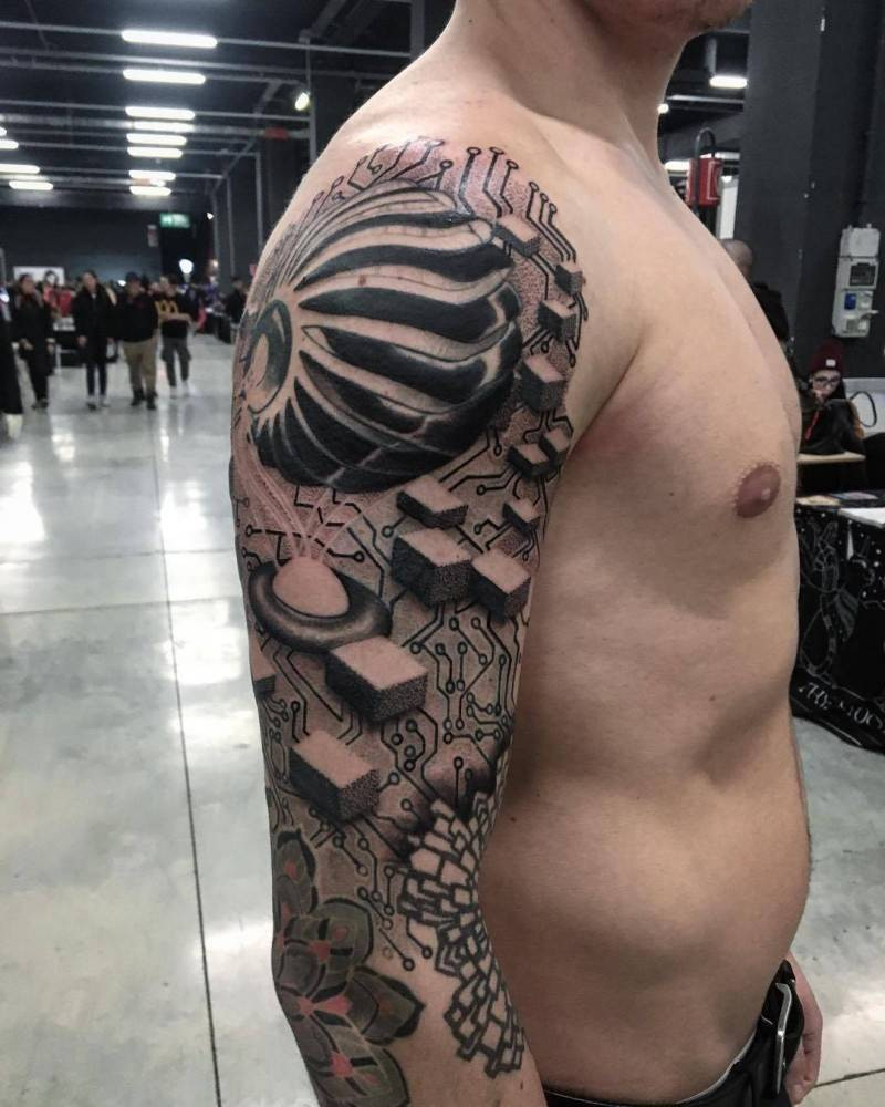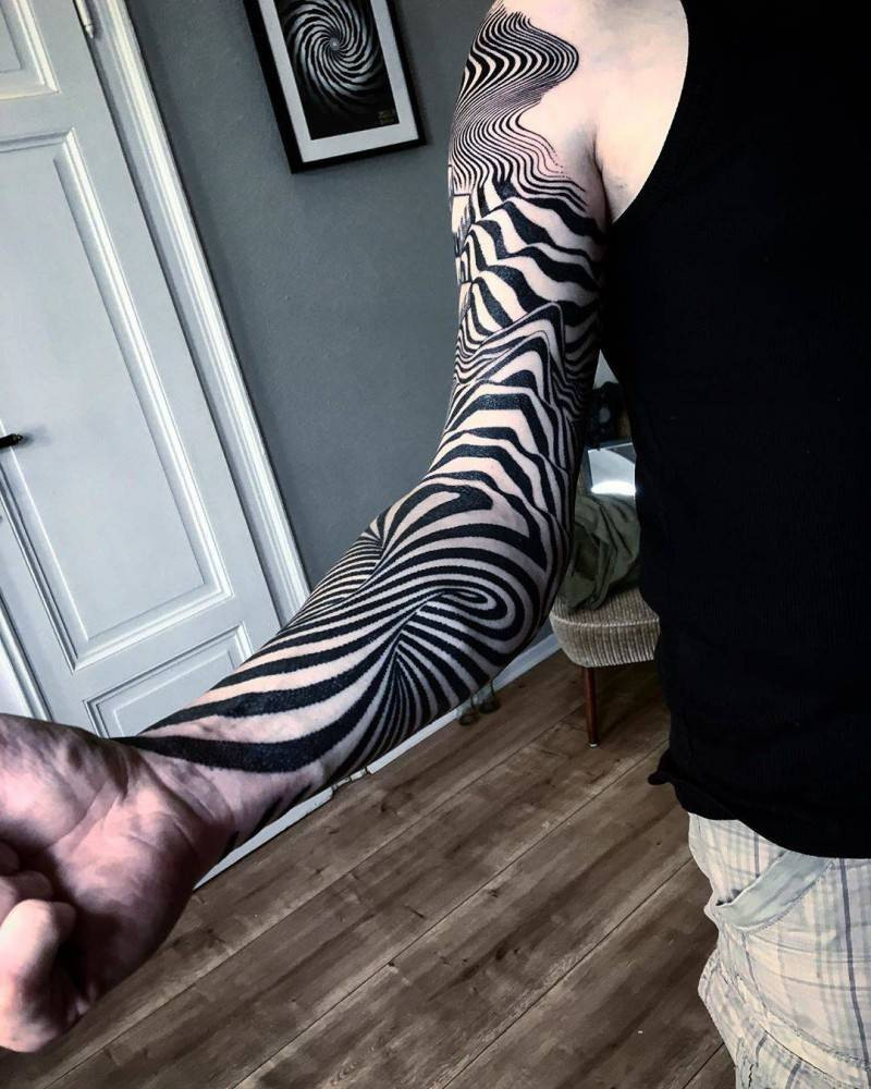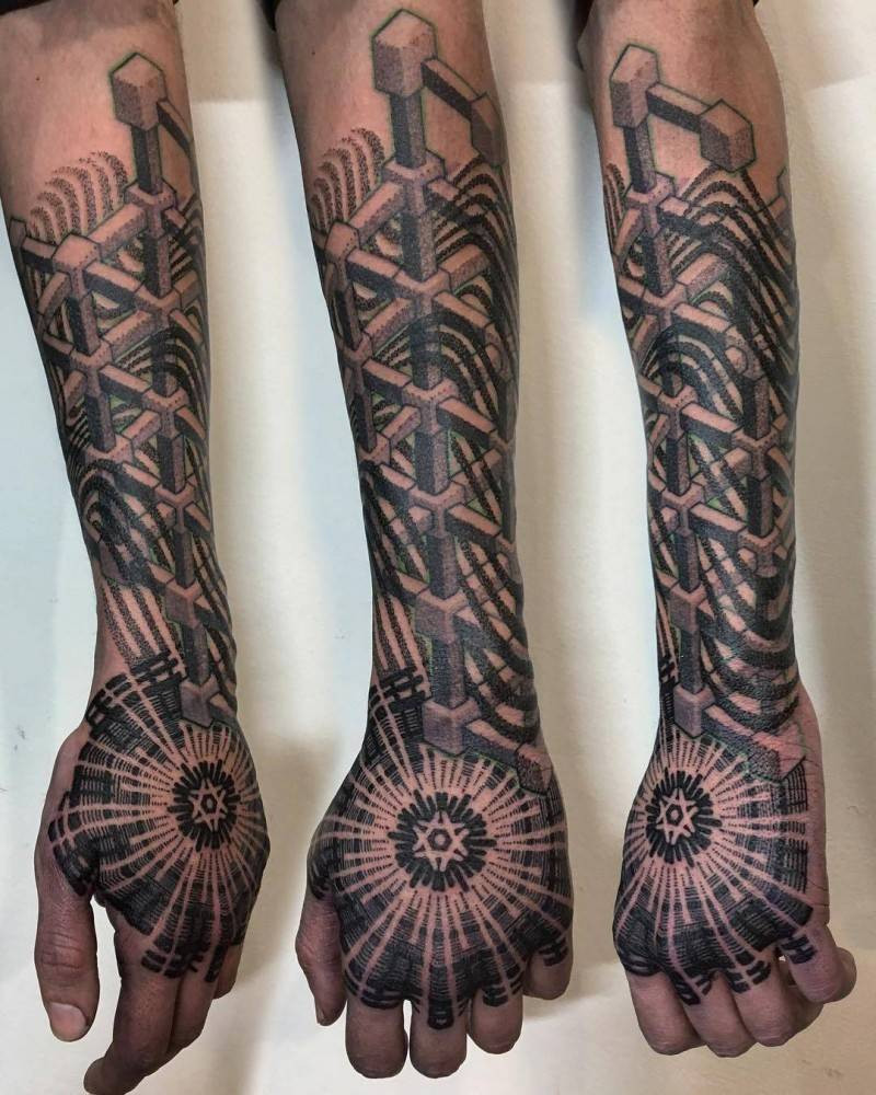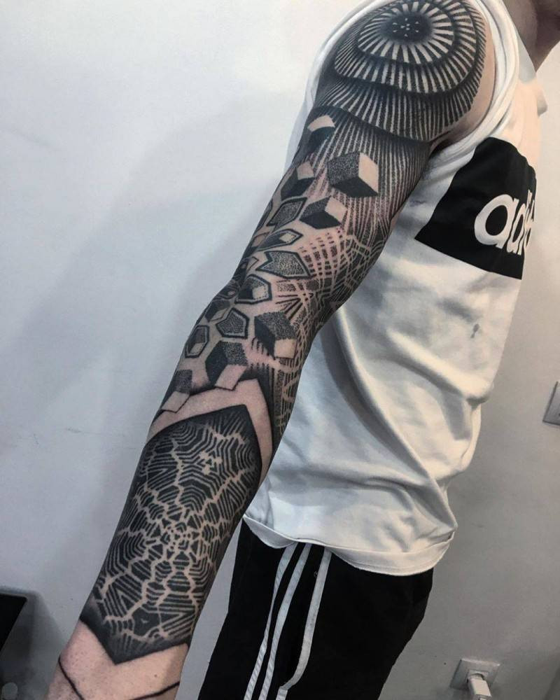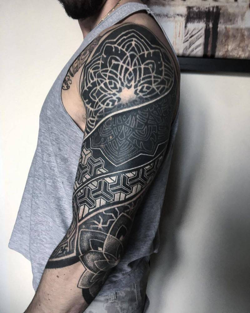 Тату браслет на мужской руке имеет абстрактный характер, если изображаются геометрические фигуры и линии. Подчеркивает силу духа и тела, редко агрессию. Придает шарм накаченному мужскому телу, что видно на фотографиях. Парни любят набивать их на уровне бицепсов.