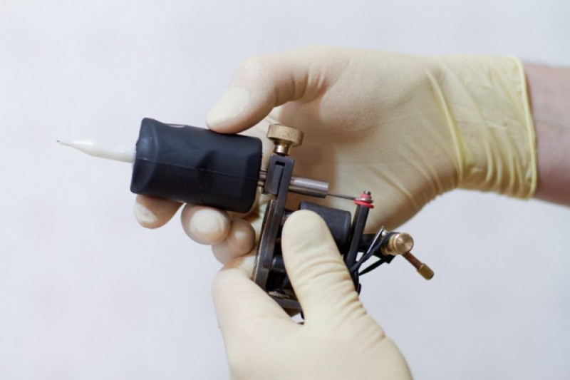 Затем мастер готовит свое рабочее место, достает и дезинфицирует все необходимые приборы. Также одевает одноразовые перчатки. Все расходные материалы используются исключительно один раз, в том числе иглы.
