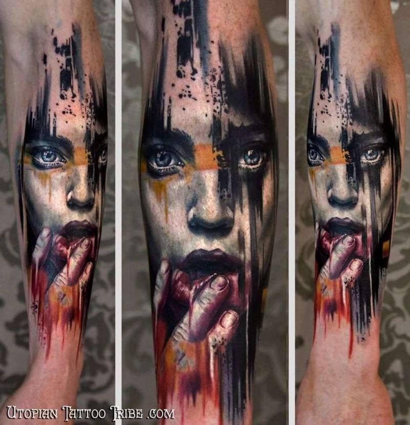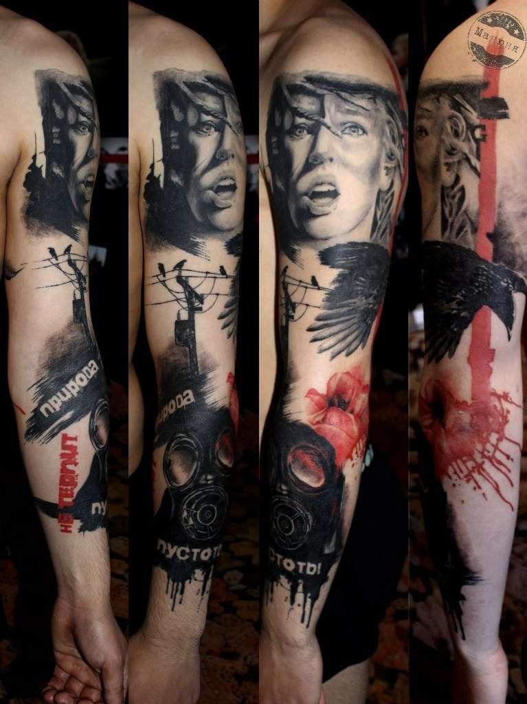 Графика. У этого стиля есть еще одно название – лайнворк. Данное направление идеально подходит для тату в виде браслета. Чаще всего изображения в этом ключе выполняются с применением черных и красных красок.
