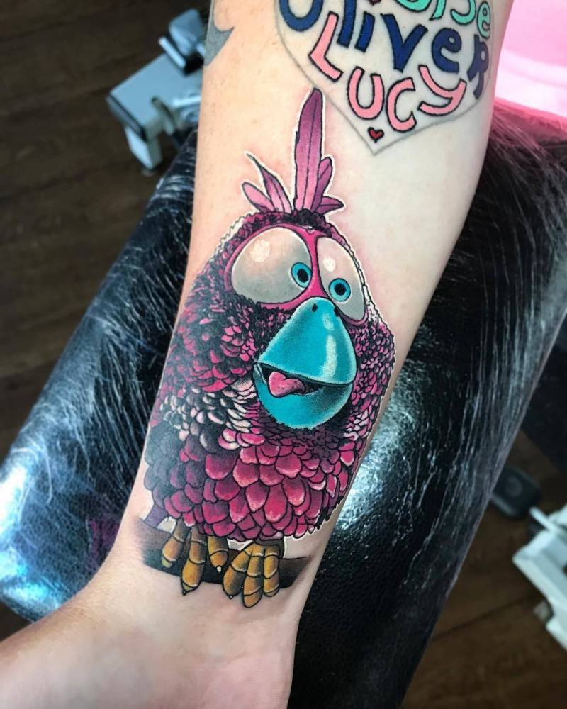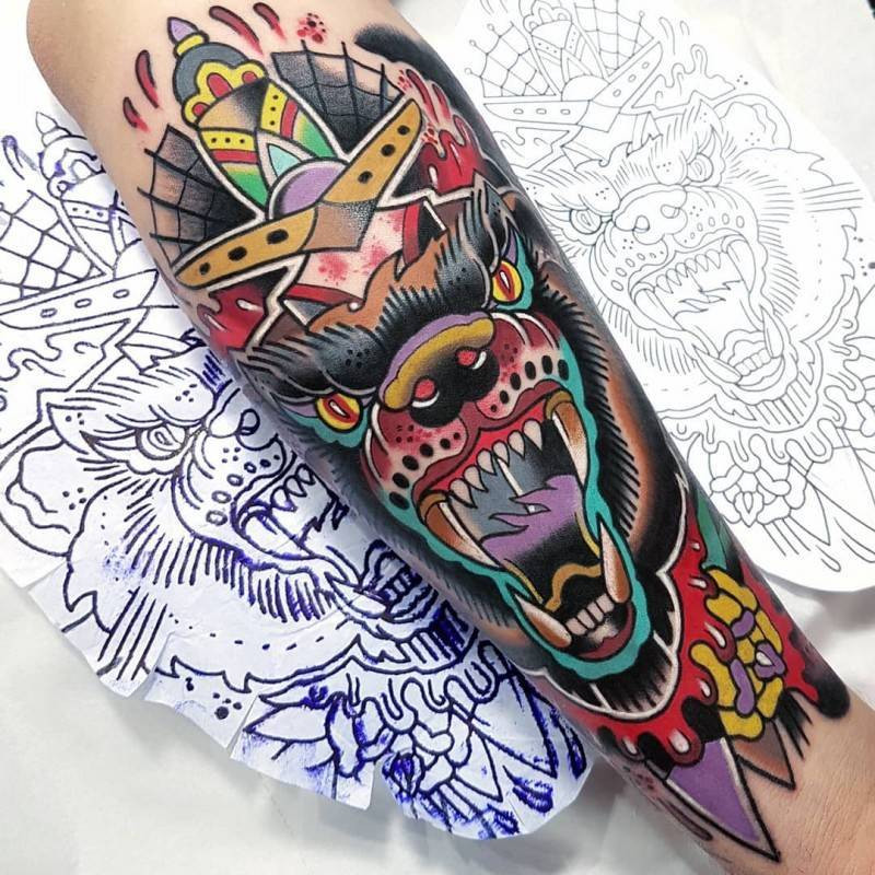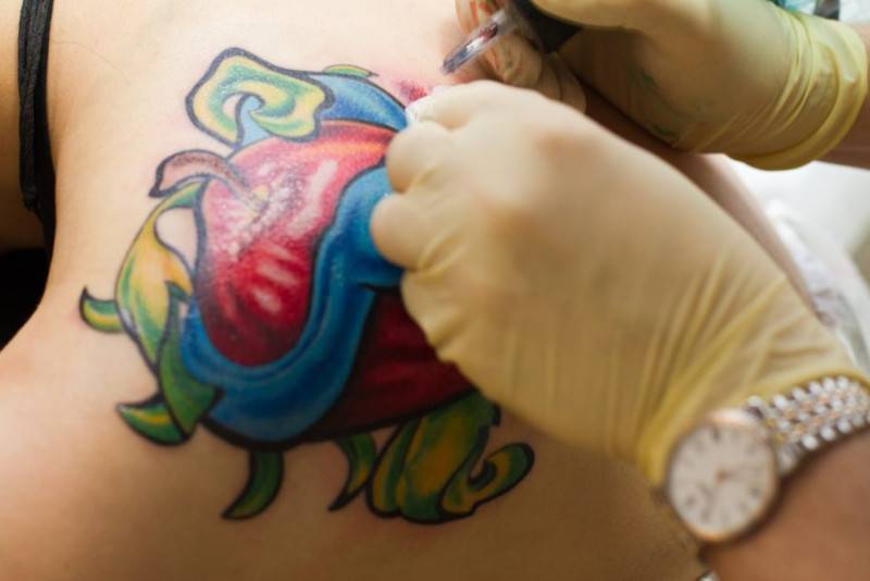 В конце мастер заполняет контур цветными красками и смазывает место татуировки заживляющими мазями.