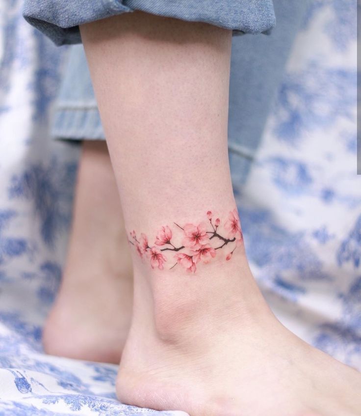 Еще один цветочный ножной браслет украшает наш список, на этот раз полный ярких цветов и цветовой гаммы, которая просто источает весну. Татуировщик Silo добавляет в наш список несколько разных дизайнов, всегда уникальных и ярких. (Фото: Tattooist Silo)