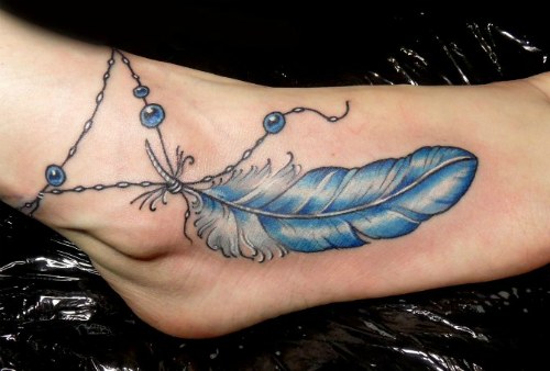 Вы быстро заметите, что ножные браслеты с перьями часто встречаются в этом списке. По какой-то причине они являются самым популярным типом татуировки на щиколотке. Если вы ищете что-то яркое и богатое деталями, этот блестящий ножной браслет из перьев из бисера, несомненно, вдохновит вас на следующий дизайн. (Фото: Татуист Ривер)
