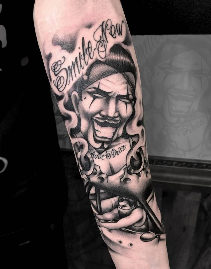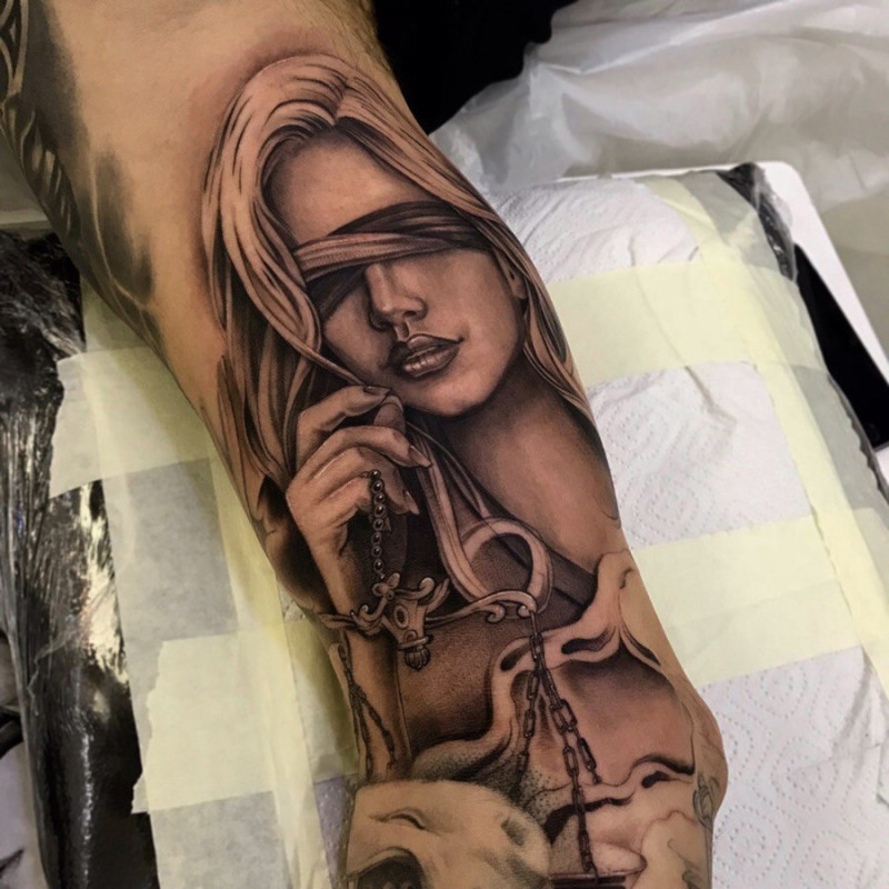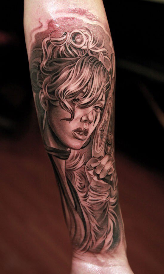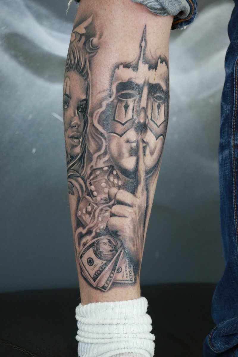 КорреспондентArtifex Валерий Малков решил разобраться, какую нишу занимает этот стиль в современном мире, и отправился за комментарием к эксперту – московскому татуировщику Трипсу. Artifex: Скажи, пожалуйста, кто сегодня в основном набивает такие татуировки? Такие татуировки делают любители черно-серого стиля. В его основу входят изображения девушек, черепов; картины, символизирующие смерть, религию, семью, окружение. А также различные шрифты. Татуировки имеют мрачное изображение, и это немудрено, ибо основоположники этого стиля – гангстеры.