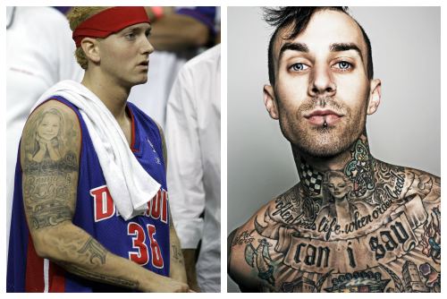 Среди знаменитостей мужского пола обладателями тату в стиле chicano являются рэпер Эминем и барабанщик панк-группы Blink-182 Трэвис Баркер.
