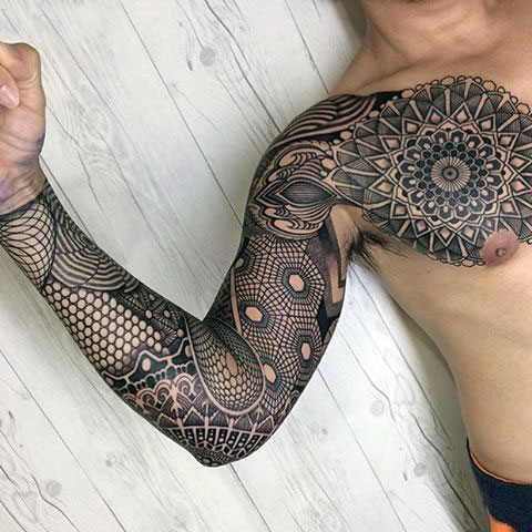 У мужчин эффектно смотрится тату-рукав. Это масштабное изображение от шеи до запястья, которое обычно выполняется за несколько сеансов. Неплохо выглядит этника-тату на ноге. Такой вариант при выборе правильного эскиза подойдет и женщинам.
