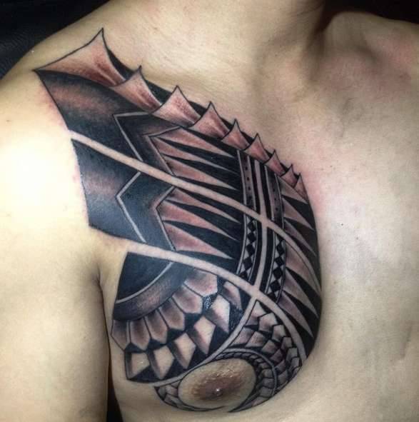 Этническая татуировка на груди парня