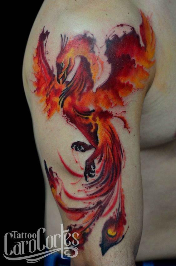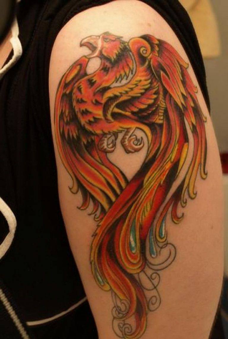 Самое универсальное и распространенное решение — изображение феникса на руке. Такую татуировку выбирают те, кто желает показать окружающим свое отношение к жизни и всю красоту выполненного рисунка. Феникс, изображенный на запястье — очень распространенное тату. Такая татуировка обычно встречается небольшого размера. Многие выбирают картинку, когда некоторые ее части, например, хвост или крылья птица, переходят на другие участки руки. Очень красиво и ярко выглядит татуировка на предплечье. Здесь картина получится не такая большая, как на спине, но за счет определенной техники получается оригинальной и объемной.