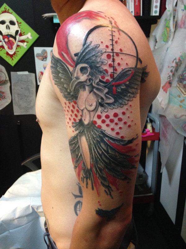Подобно татуировкам старой школы, стиль тату новой школы использует смелые линии и крупный дизайн.
