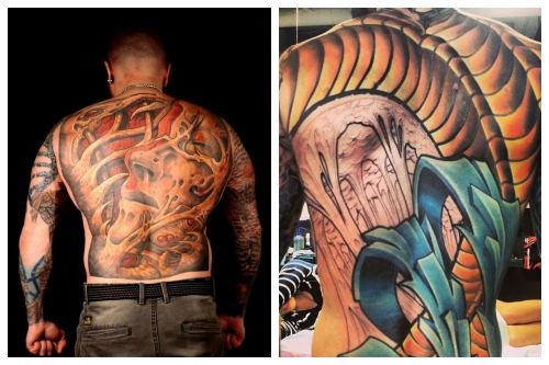 Удачным считается расположение на спине. На большой площади кожного покрова можно воплотить в жизнь самые смелые решения, нанося различные механические детали, придающие еще большую эффектность рисунку.