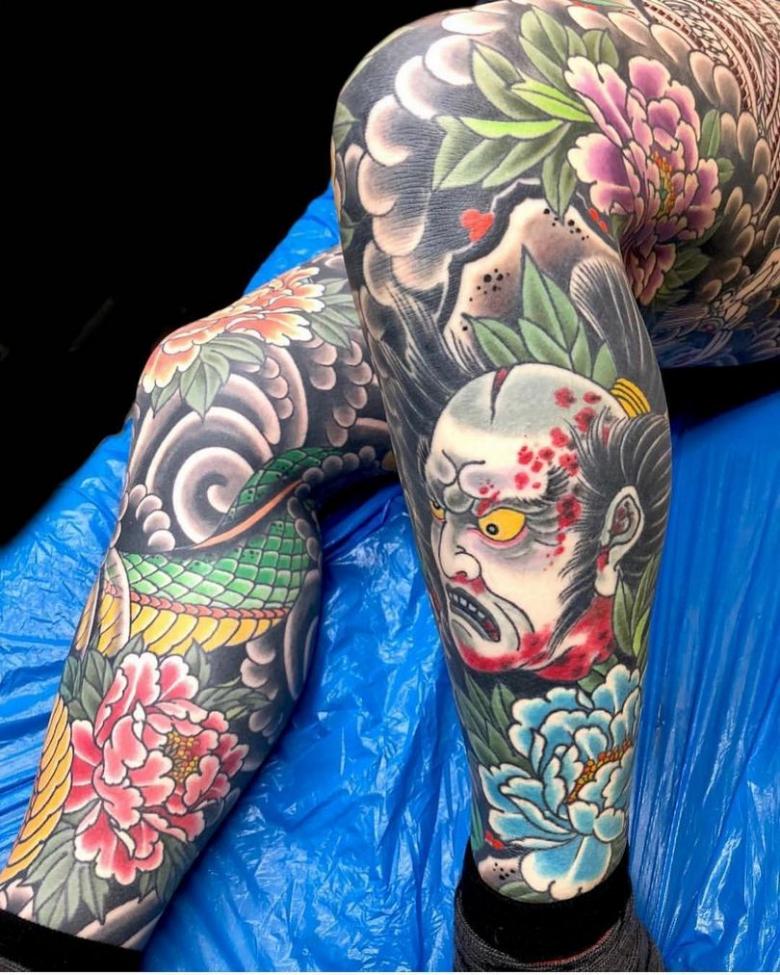 Традиционные тату в Японии могут набивать только известные мастера. Шедевры выполняются за длительный период времени, который может занимать около 5 лет. Например, так долго выполняется работа по изображению тату-костюма. Стоит отметить, что это дорогой и болезненный процесс.