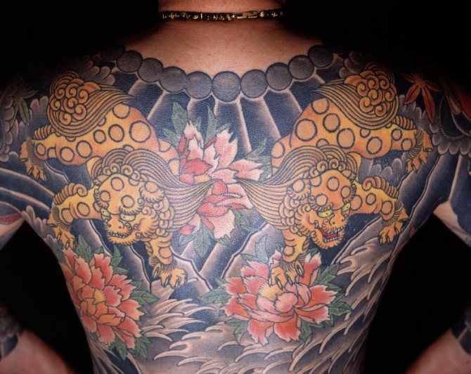 - Фудо Мёо – божественный страж Буды. Его показывают с верёвкой и саблей в разных руках. Такие изображения наносят нелегальные торговцы и наркотик — торговцы.