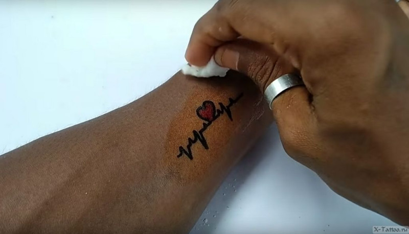 Чтобы прикрепить к телу переводку потребуется всего 5 минут. Сначала с бумаги, на которой нанесено выбранное изображение, снимается защитная пленка. Необходимо приложить и прижать картинку «лицом» к коже и хорошо ее намочить. Через 30 секунд бумага убирается, а тату остается на теле. Рисунок продержится не дольше 3-5 дней, после чего потрескается и облезет хлопьями. Ускорить процесс удаления поможет жесткая мочалка.