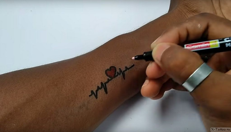 - Дальше нужен маркер. С его помощью рисуем татуировку на подготовленном месте. Срок службы татушки будет зависеть от того, какой маркер вы используете. Про их разновидности будет дальше.